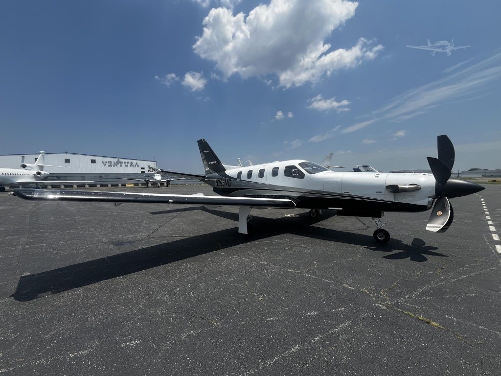 The TBM is an industrial grade aircraft built to blend speed with its ability to land even at small, remote airports. It is smaller but fills a similar mission to the Pilatus exhibited elsewhere.